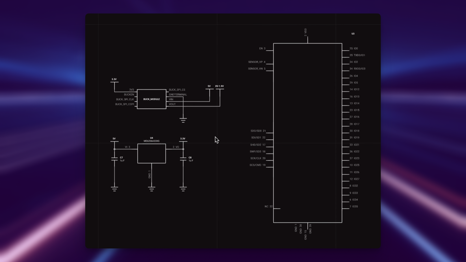 In this case, we've used Flux to connect the SPI bus from the buck module to the ESP32