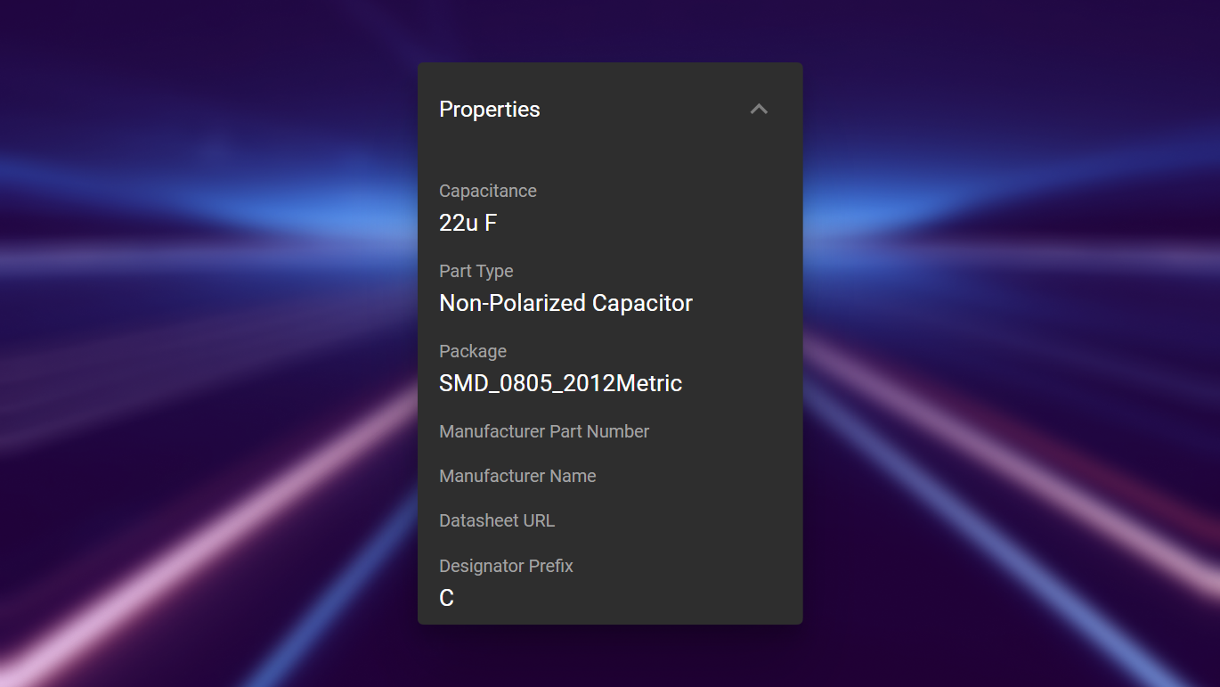 In Flux, we use properties to constrain our design. For example, some parts can change their footprint based on the package property properties (0603, 0805, etc.). Many built-in or user-created features may rely on these properties.