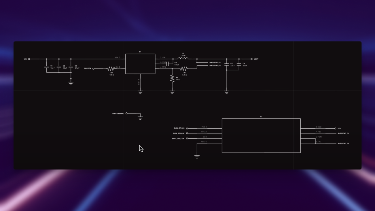 We'll start with creating the buck converter as a module. Buck converters are incredibly useful circuit blocks that allow for stepping down a voltage input. Since buck converters are used everywhere, creating a module for one will be useful in future projects, and in our own project's organization. Specifically, it will be contained in a module that will show it as a single symbol in the main schematic rather than all of its individual pieces, increasing readability.