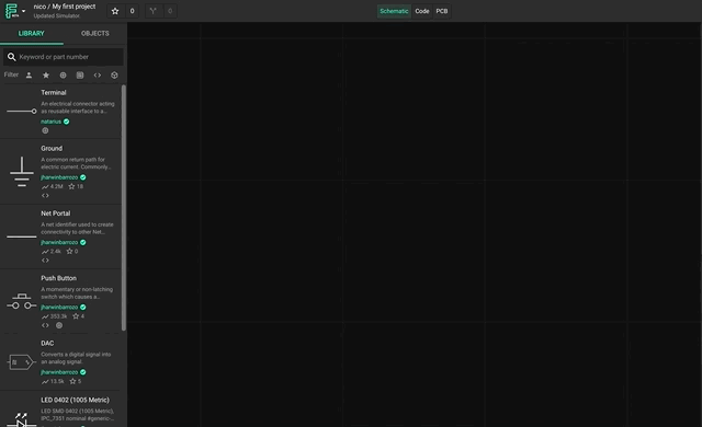 To add parts to a module, simply search for your desired parts in LCSE, then drag and drop from the library into the Canvas.