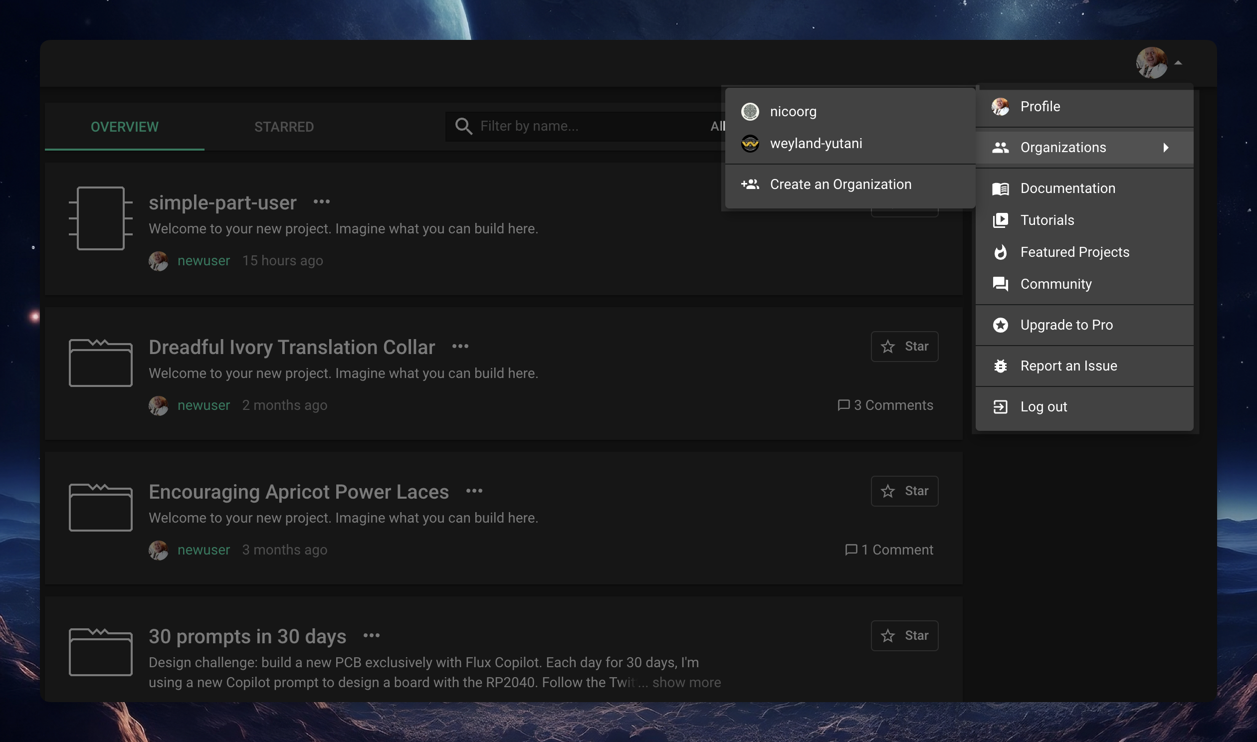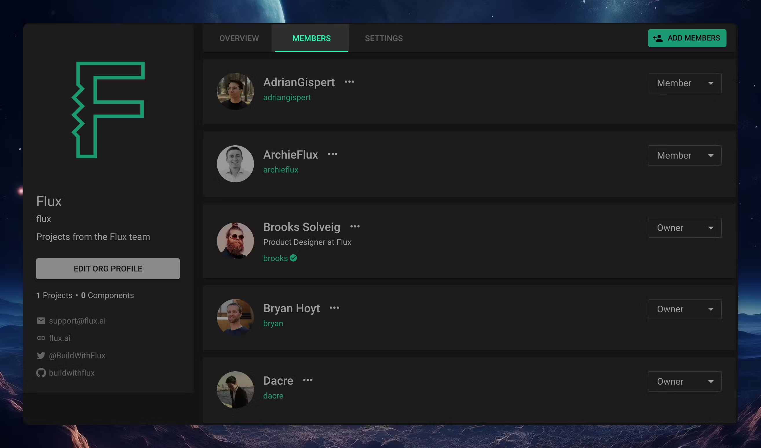 Flux Organizations is a shared space for your team to collaborate. Manage access to projects, and libraries and create templates from a centralized place.