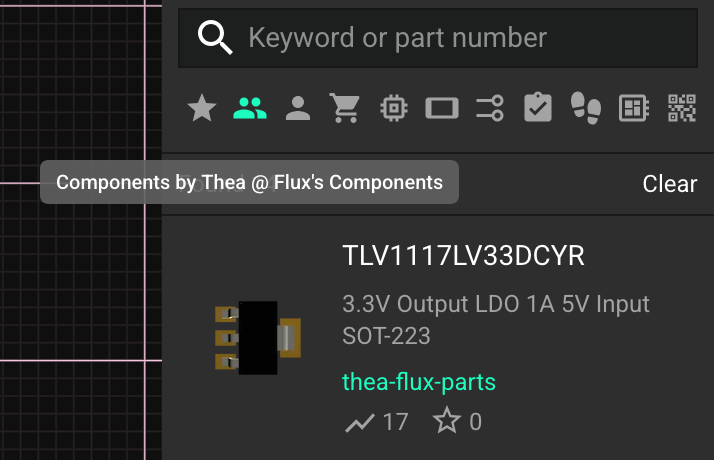 Similarly to how you can filter by only parts that you've created with your own personal account, you can filter by only parts the organization has created.